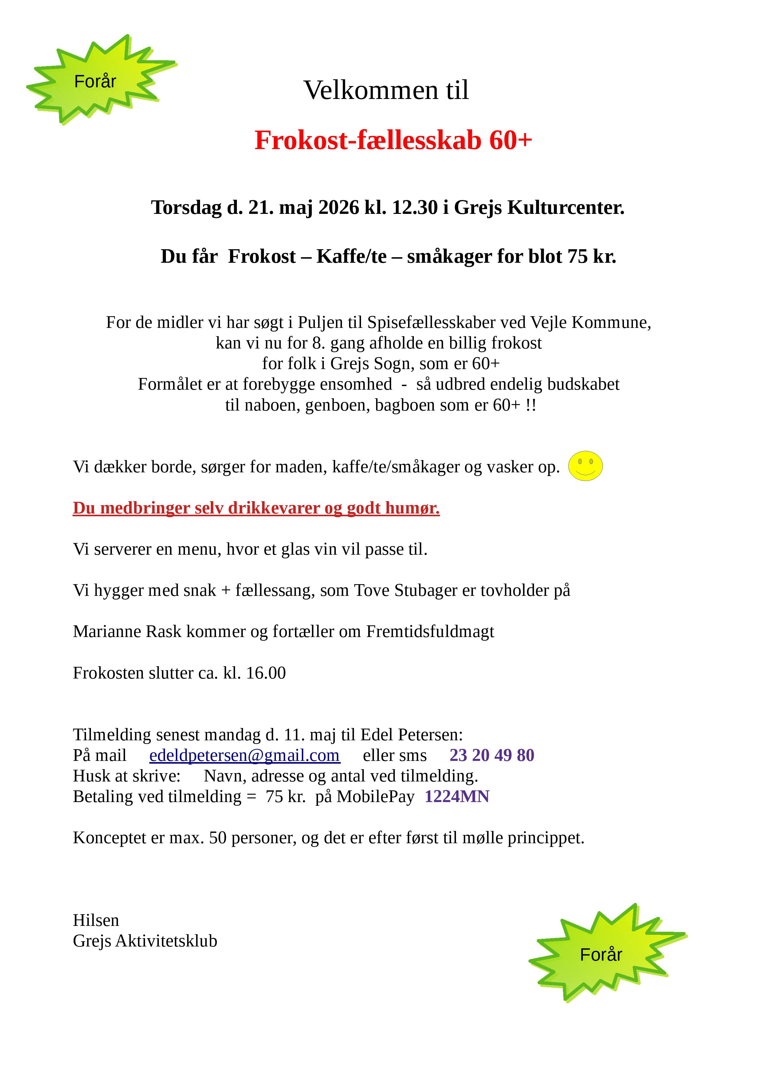Torsdag d. 21. maj kl. 12.30 i Grejs Kulturcenter.