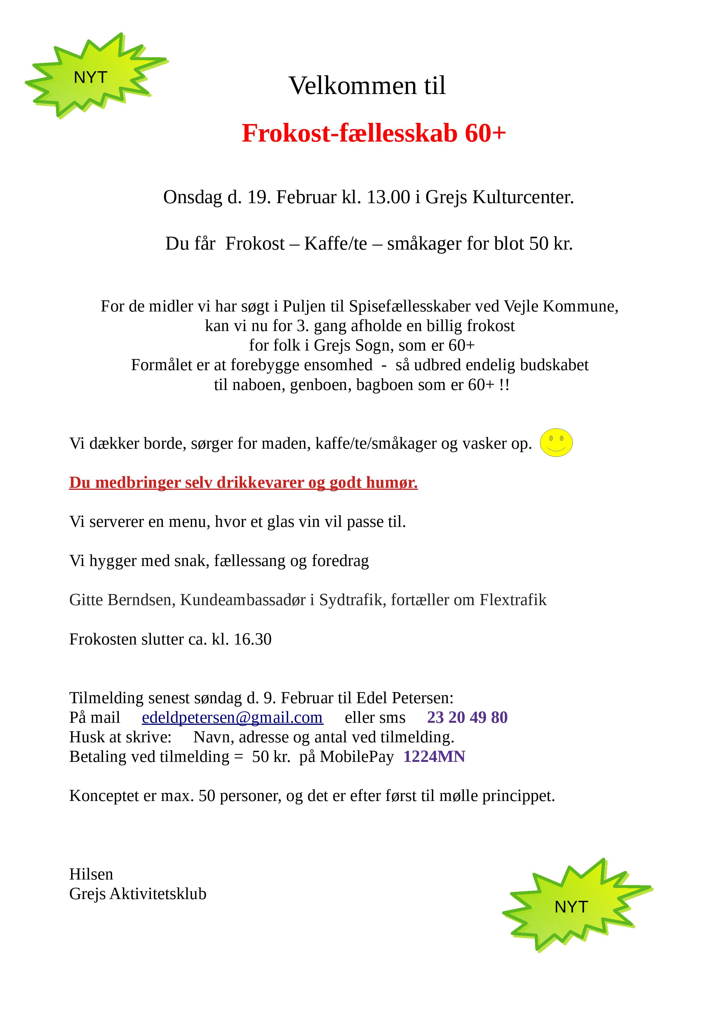 X-ALT-DESC;FMTTYPE=text/html:Frokost-fællesskab 60+ i Grejs Kulturcenter for folk i Grejs sogn